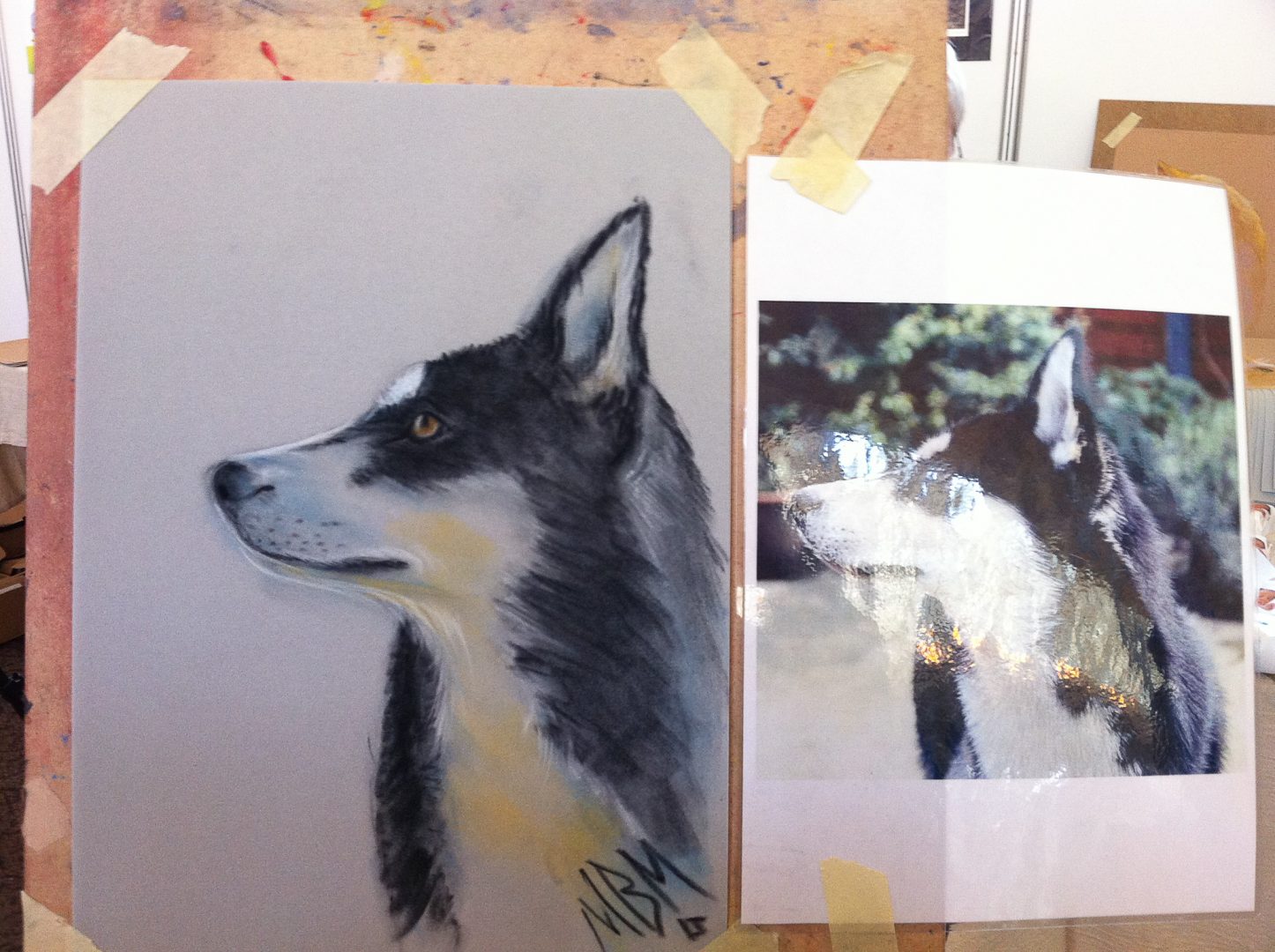 My finished version of Vic’s husky dog in pastel.